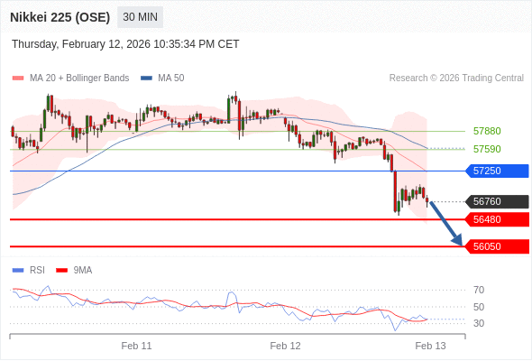 在 57250 之下,看跌,目标价位为 56480 ,然后为 56050 。