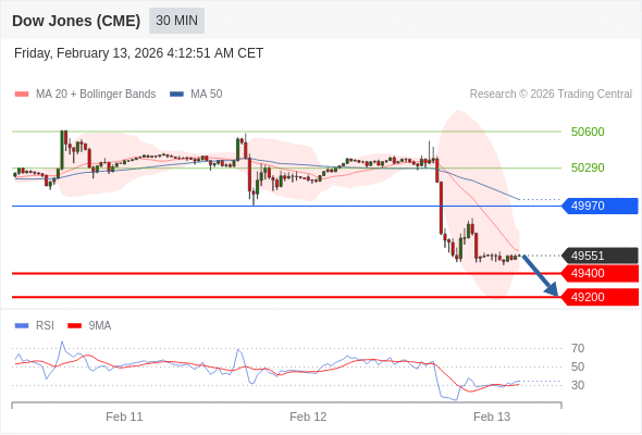在 49970 之下,看跌,目标价位为 49400 ,然后为 49200 。