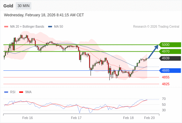 黄金现货 当日内: 朝5000运行。