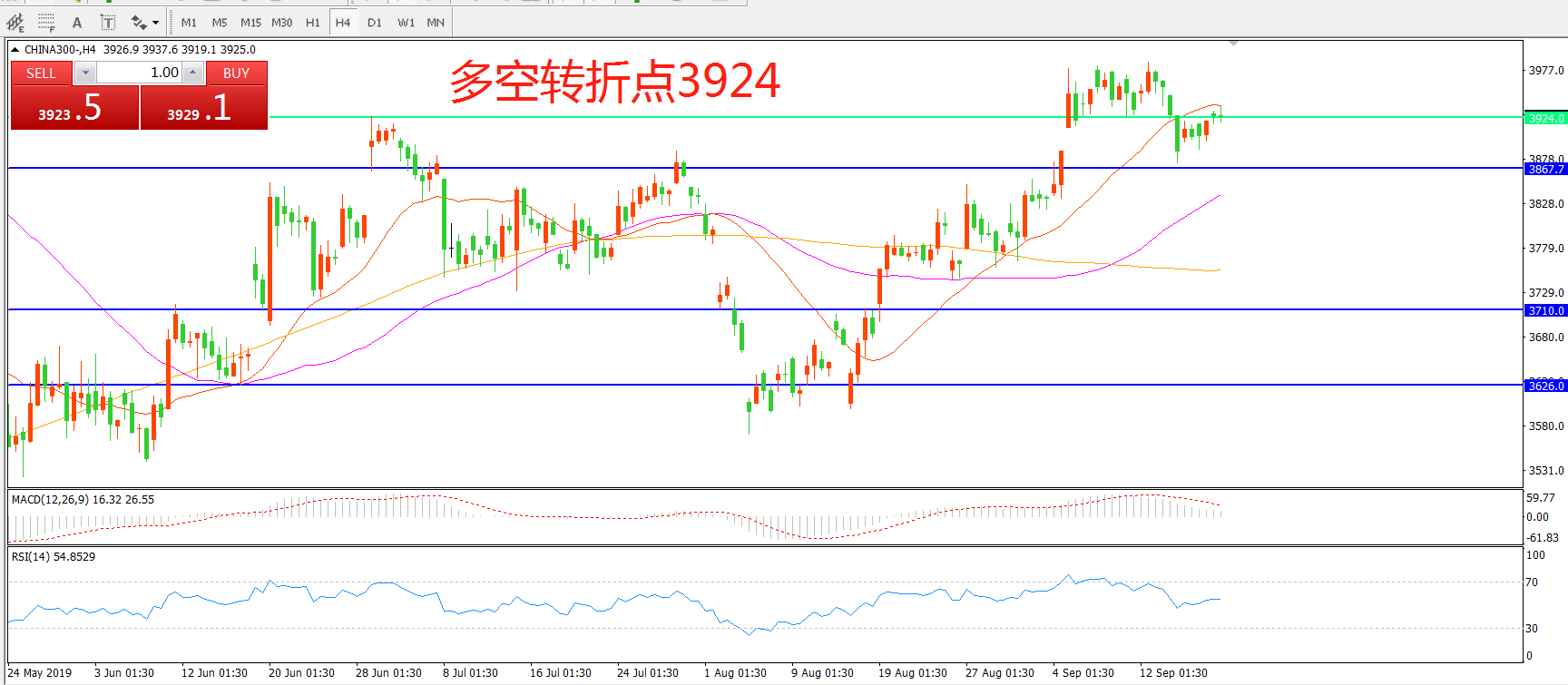 多空转折点:3924.00