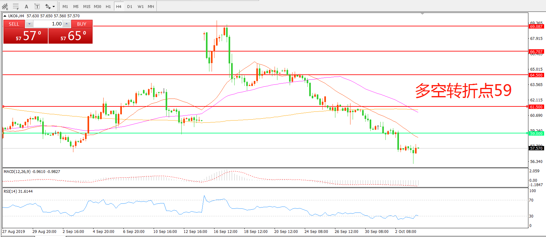 周四(10月3日),美国经济增长放缓以及欧洲经济衰退预期加剧,引发了人们对全球经济可能陷入衰退的担忧。周二公布的报告显示,美国供应管理协会(ISM) 9月制造业指数为47.8,为2009年6月大衰退结束以来最差表现。风险情绪的衰退导致油价表现疲软,布伦特原油收跌0.03%,报57.57美元/桶。