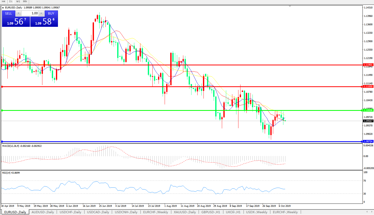 交易策略:1.1000下方看跌,目标1.0870、1.0700