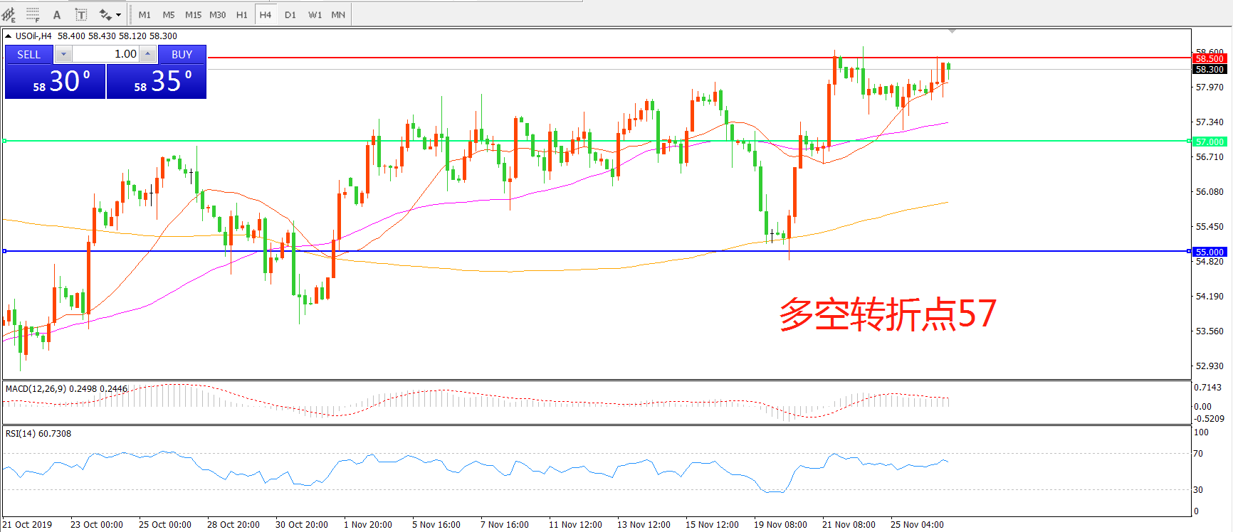 多空转折点:57.00