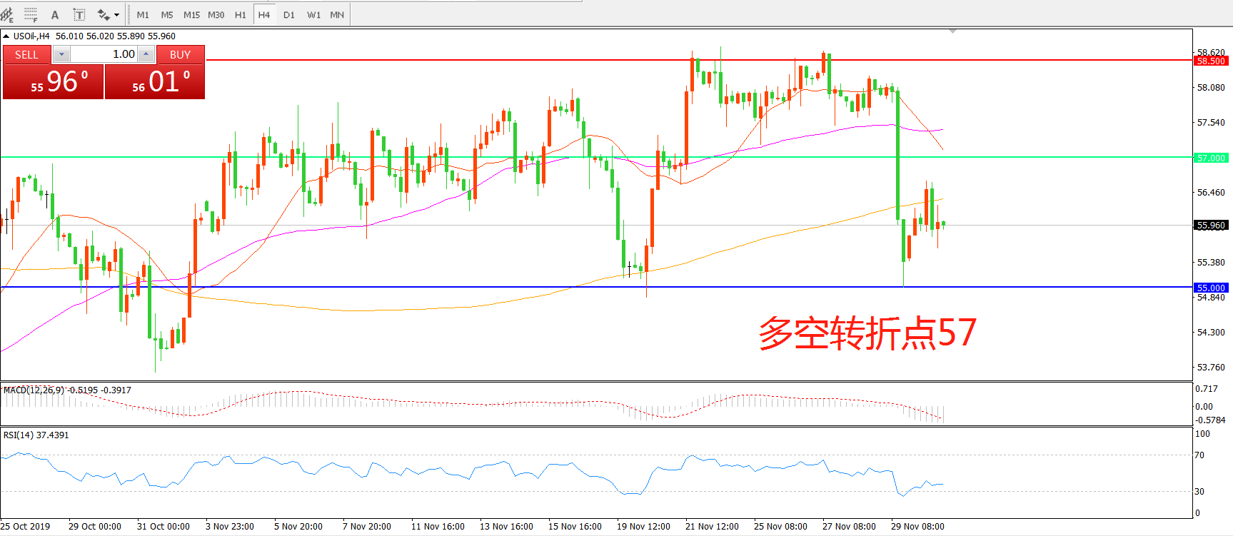 多空转折点:57.00