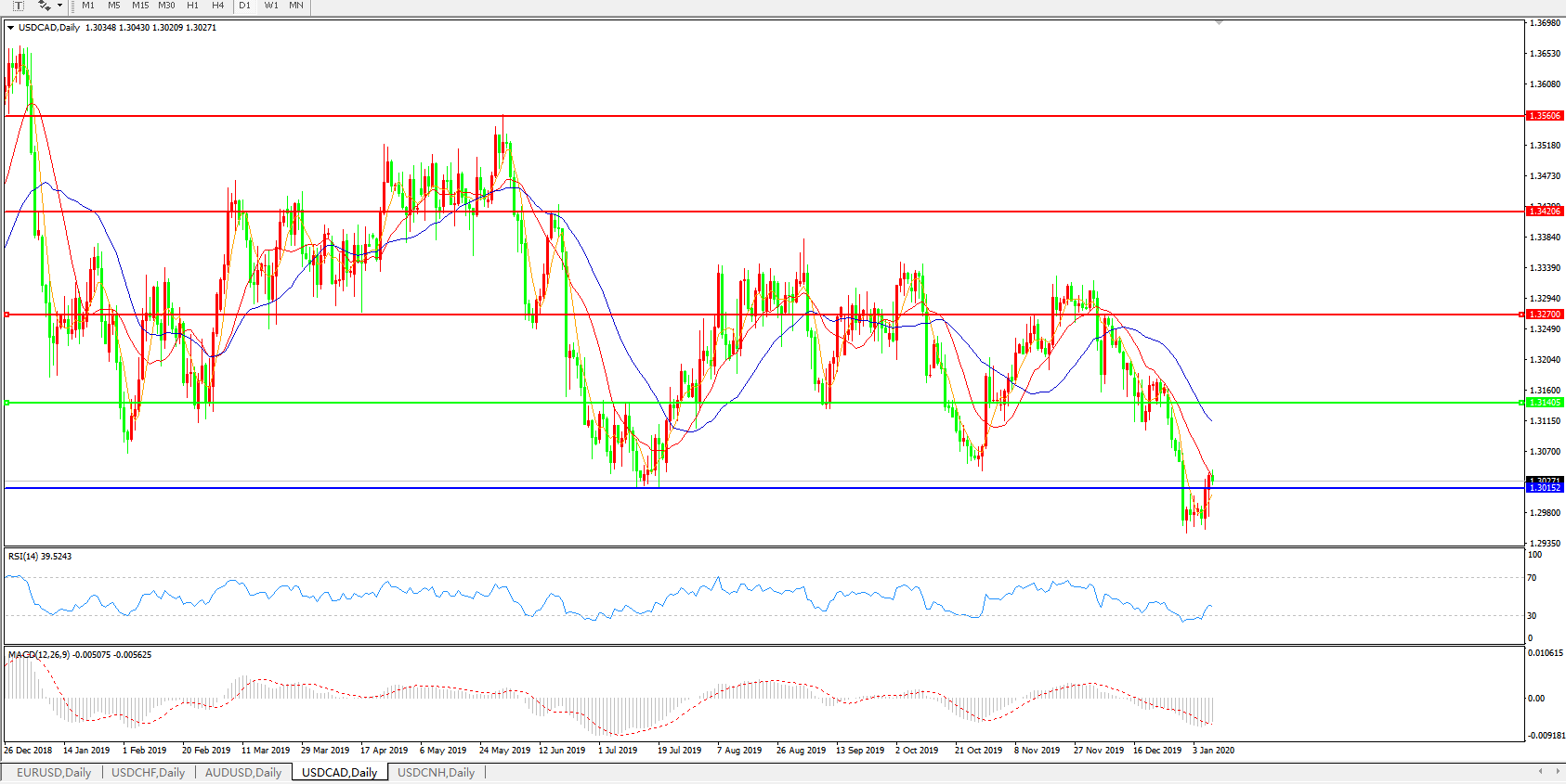 美元兑加元USDCAD    日线图: