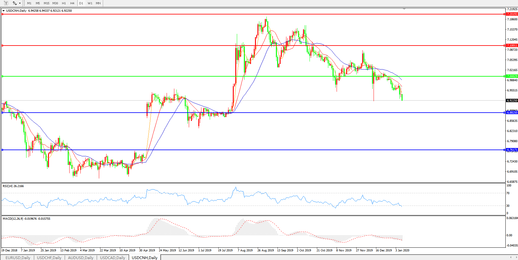美元兑人民币USDCNH 日线图: