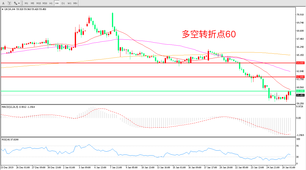 交易策略:在60.00之下看跌,目标57.00    55.00
