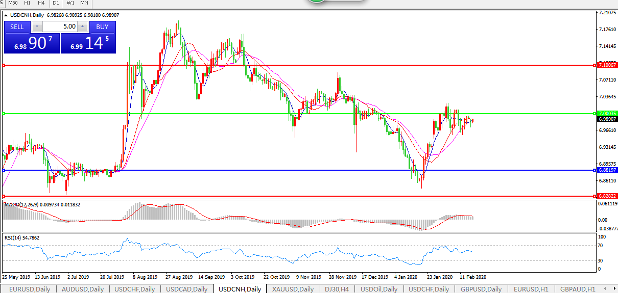 交易策略: 在7.0000之下,看跌,目标价位为6.8820,然后为6.7600。