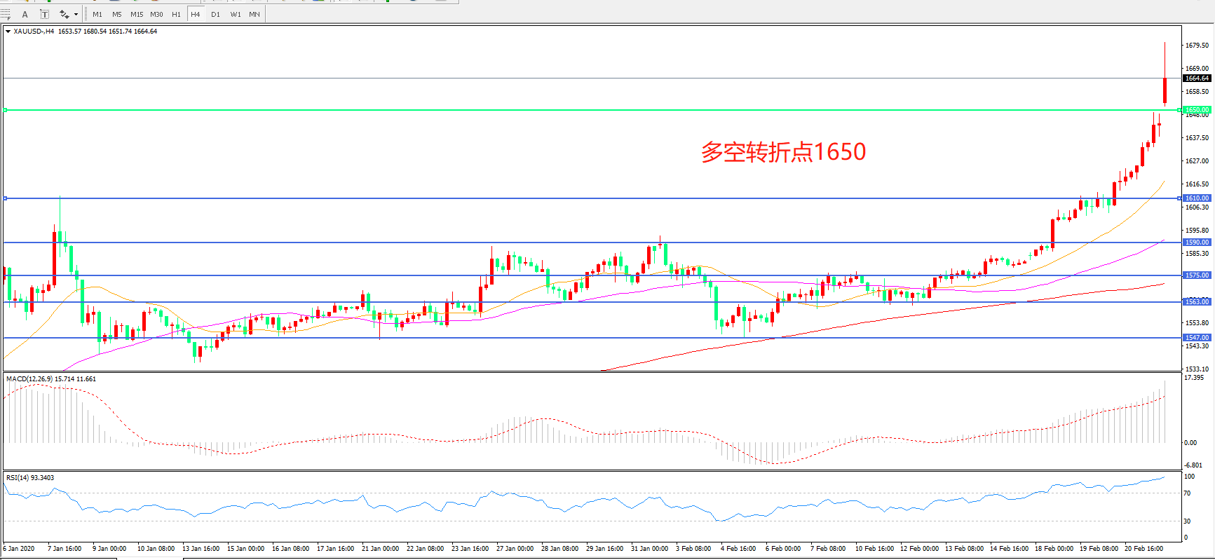 多空转折点:1650.00