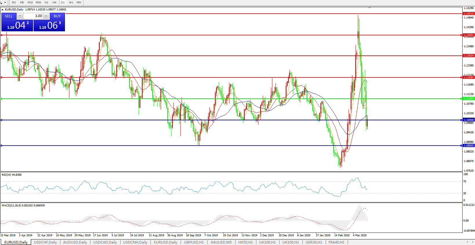 欧元兑美元EURUSD   日线图: