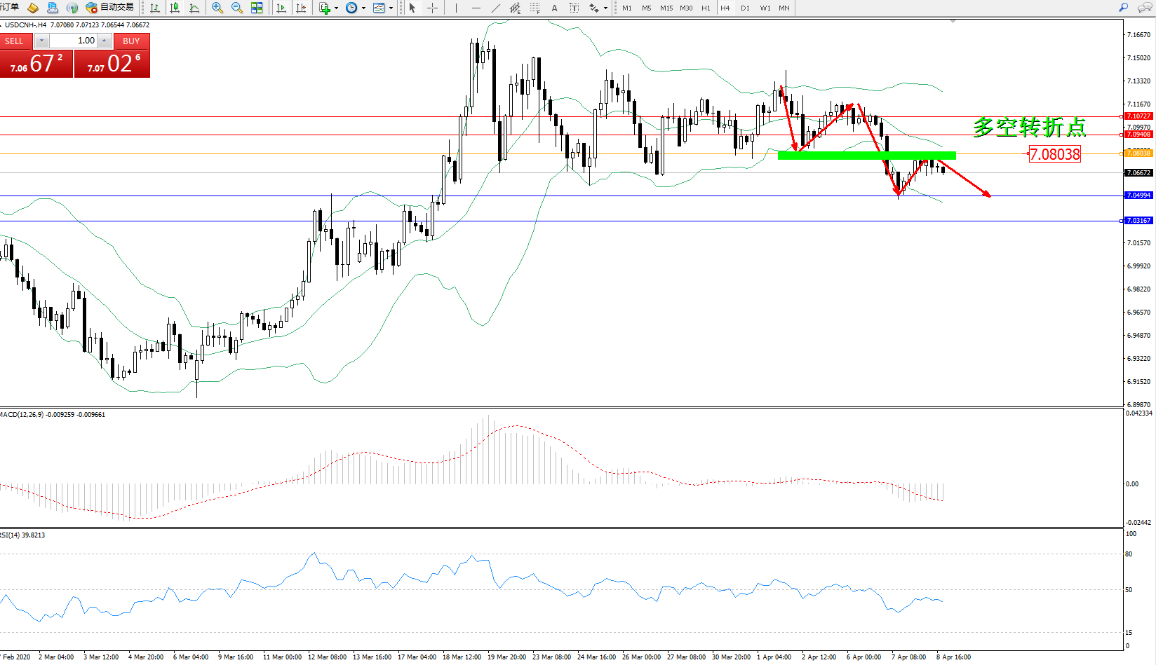 交易策略:7.08038下方看跌,目标7.049947.03167