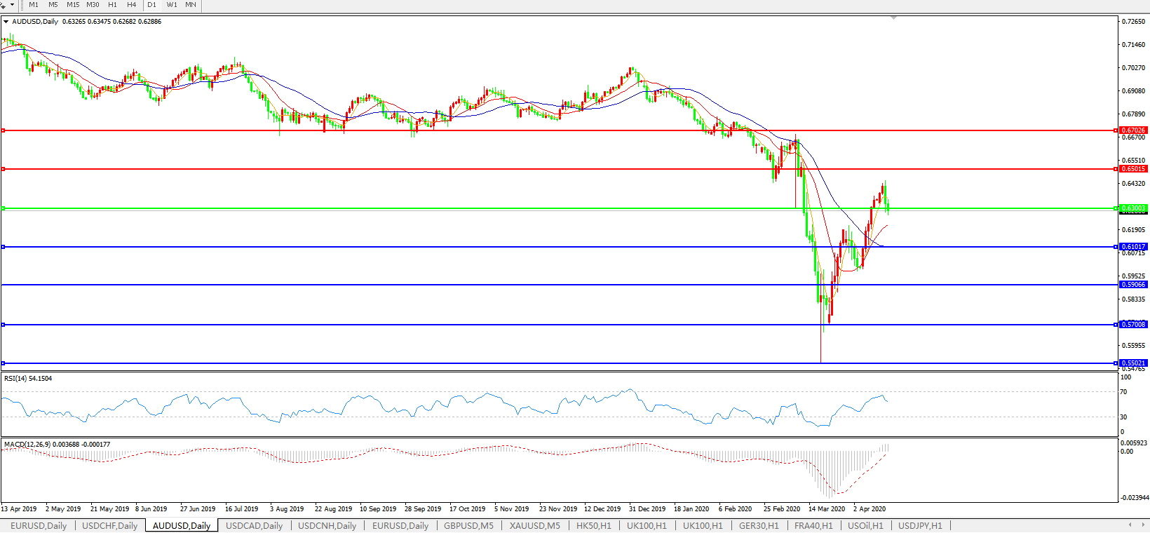 澳元兑美元AUDUSD    日线图:
