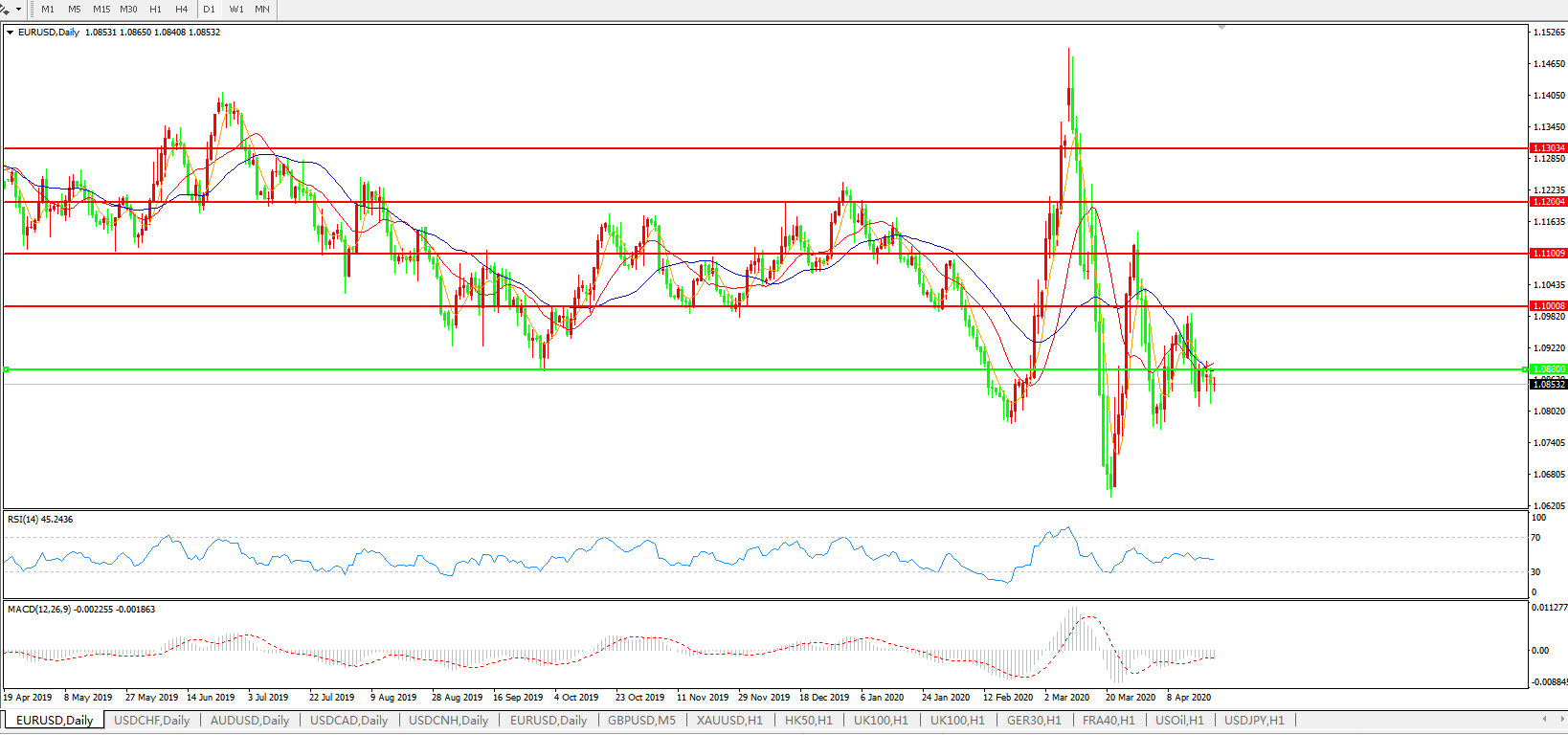 欧元兑美元EURUSD   日线图: