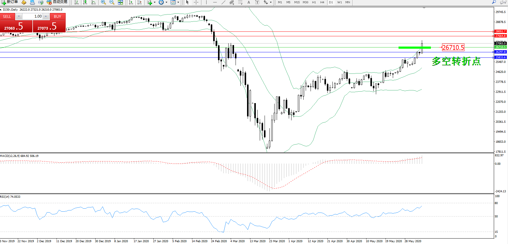 道琼斯指数65日(周五)收盘上涨829.20点,涨幅3.15%,报27110.98点。美股三大指数收盘大涨、国债下跌,美国5月就业市场意外改善,但美元本周连续第三周下滑,因对美国经济的不确定性限制了涨幅。风险较高的货币随全球股市飙升而上涨,科技股权重高的纳斯达克综合指数跑输大盘,但盘中仍创纪录。航空、汽车和银行板块飙升,预示着投资者正在从居家时代的受益者转向经济正常化的受益者。尽管按历史标准衡量,13.3%的失业率仍然高得惊人,但随着投资者押注全球经济在大量刺激政策之下将会复苏,市场正掀起一股热情。