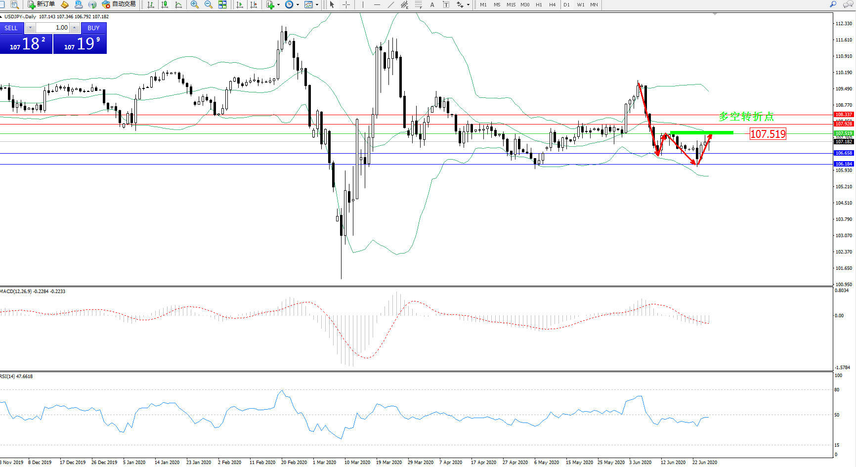 美元兑日元变动不大,报107.22;汇率本周累计上涨0.33%,为三周来首次单周上涨;按照各种市场走向,今年美元被视为是投资者选择的避风港,但美元兑日元前景仍不明朗,即使美联储采取宽松货币政策,但仍预期未来数月,任何一轮高收益资产抛售均与美元走强相关,也就是说,在这种环境下,日元仍然可以与美元保持同步;日元对亚洲地区地缘政治消息也很敏感,总的来说,未来数周美元兑日元可能进一步整理于106-108区间。