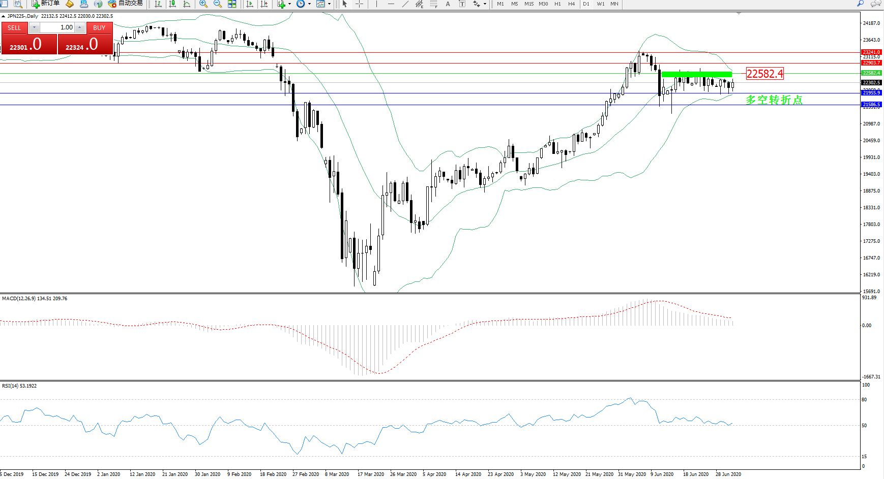日经225指数7月3日(周五)收盘上涨127.04点,涨幅0.57%,报22273.00点。因美国独立日假期,美国纽约证券交易日周五(7月3日)休市一天。亚洲股市继续走高,这令投资者保持对风险资产押注,美国就业市场依旧严峻,美国经济复苏可能会受阻,因新增病例数激增促使多个州暂缓实施重启计划,某些州甚至重新实施封锁措施。日本金融厅厅长表示,对私人金融机构来说,现在的首要任务是通过支持企业的资金,给它们喘息的空间。日本地区银行必须改革其商业模式这一事实没有改变。