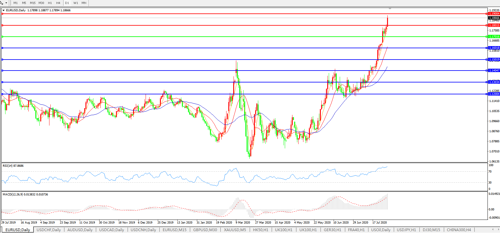 欧元兑美元EURUSD   日线图: