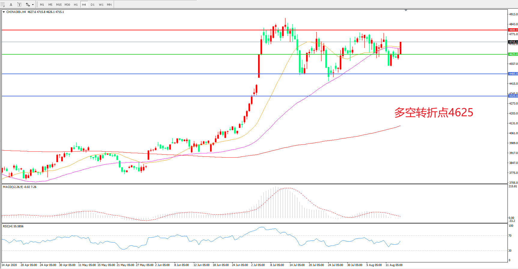 多空转折点:4625.00