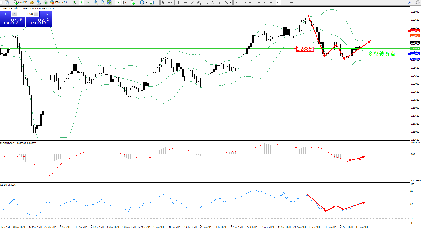 备选策略:1.28864下方看跌,目标1.30964、1.31812