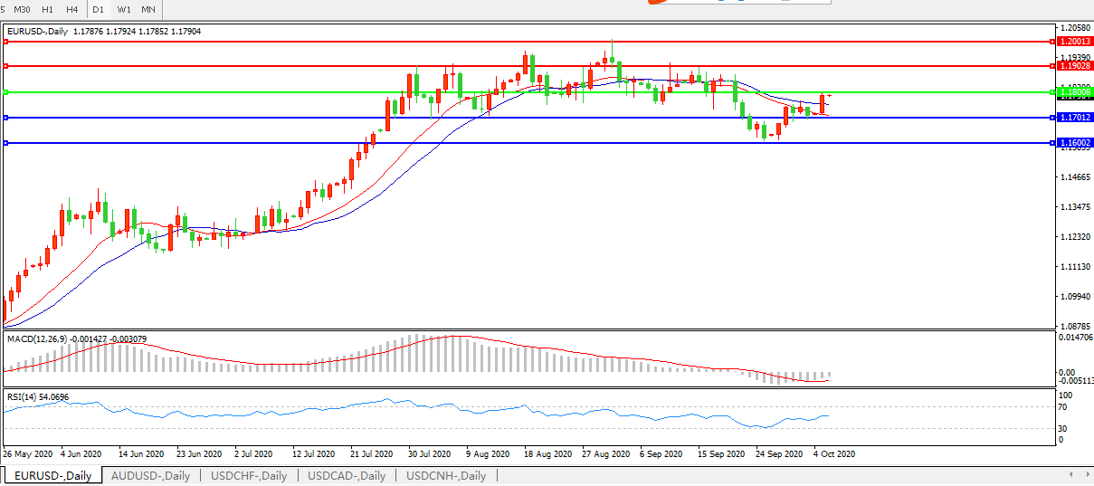 备选策略:1.1800上方看涨,目标1.1900、1.2000