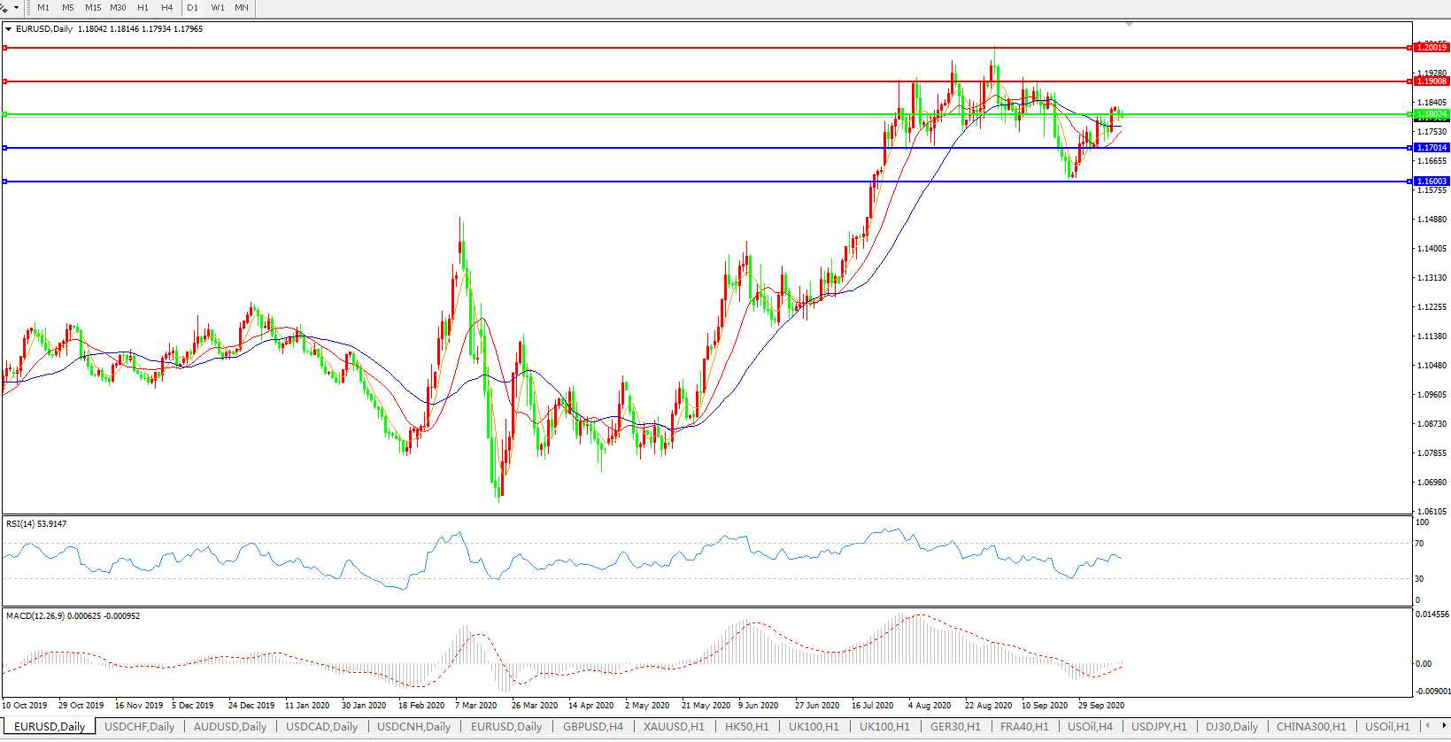 交易策略:1.1800上方看涨,目标1.1900、1.2000