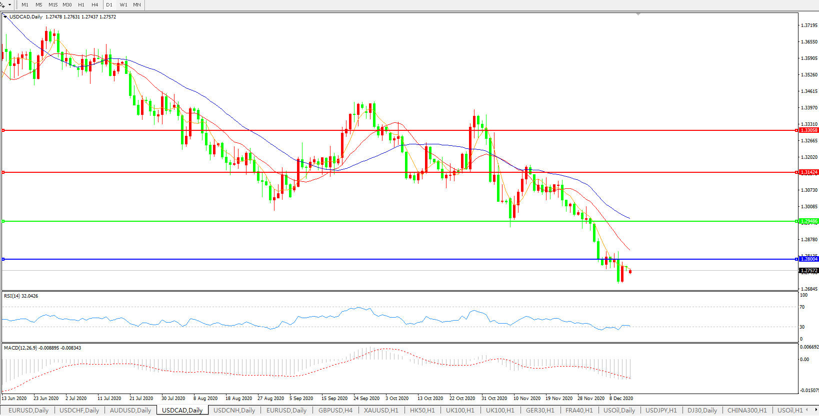 美元兑加元USDCAD    日线图:
