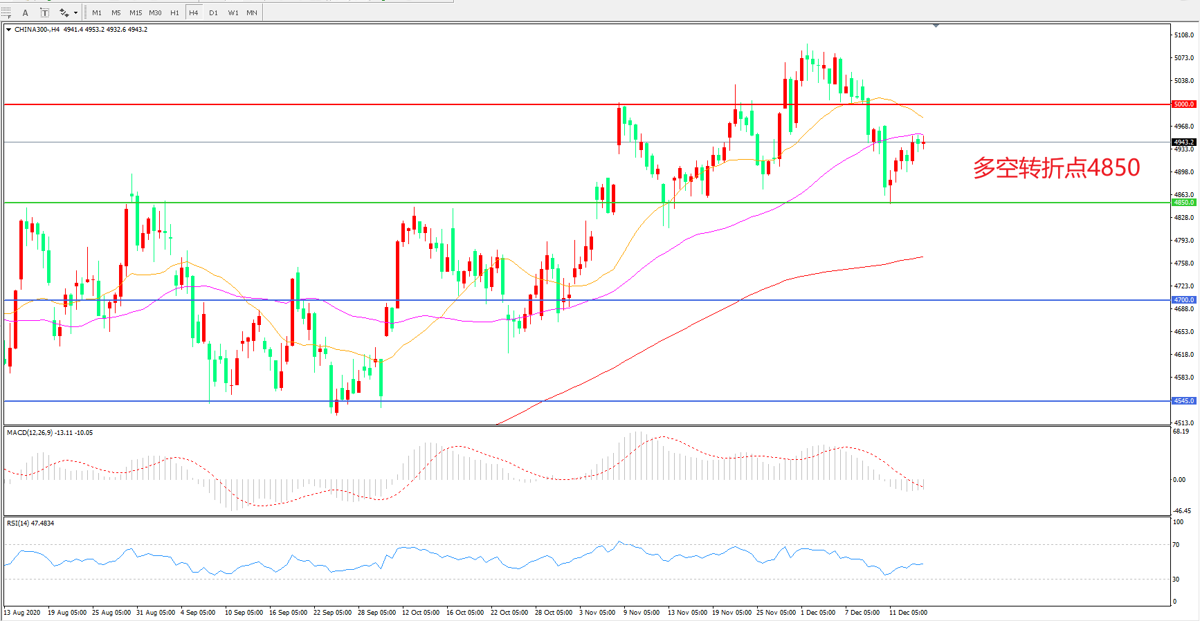 多空转折点:4850.00
