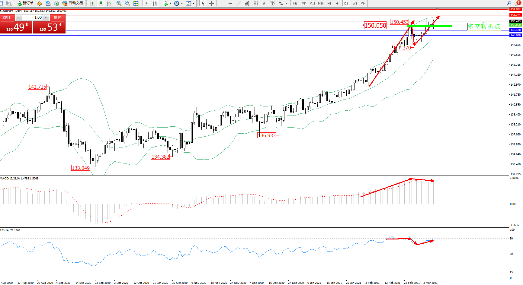 多空转折点:150.050