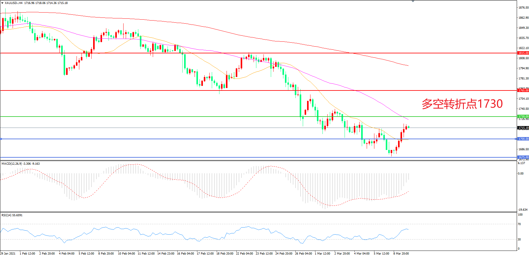 多空转折点:1730.00