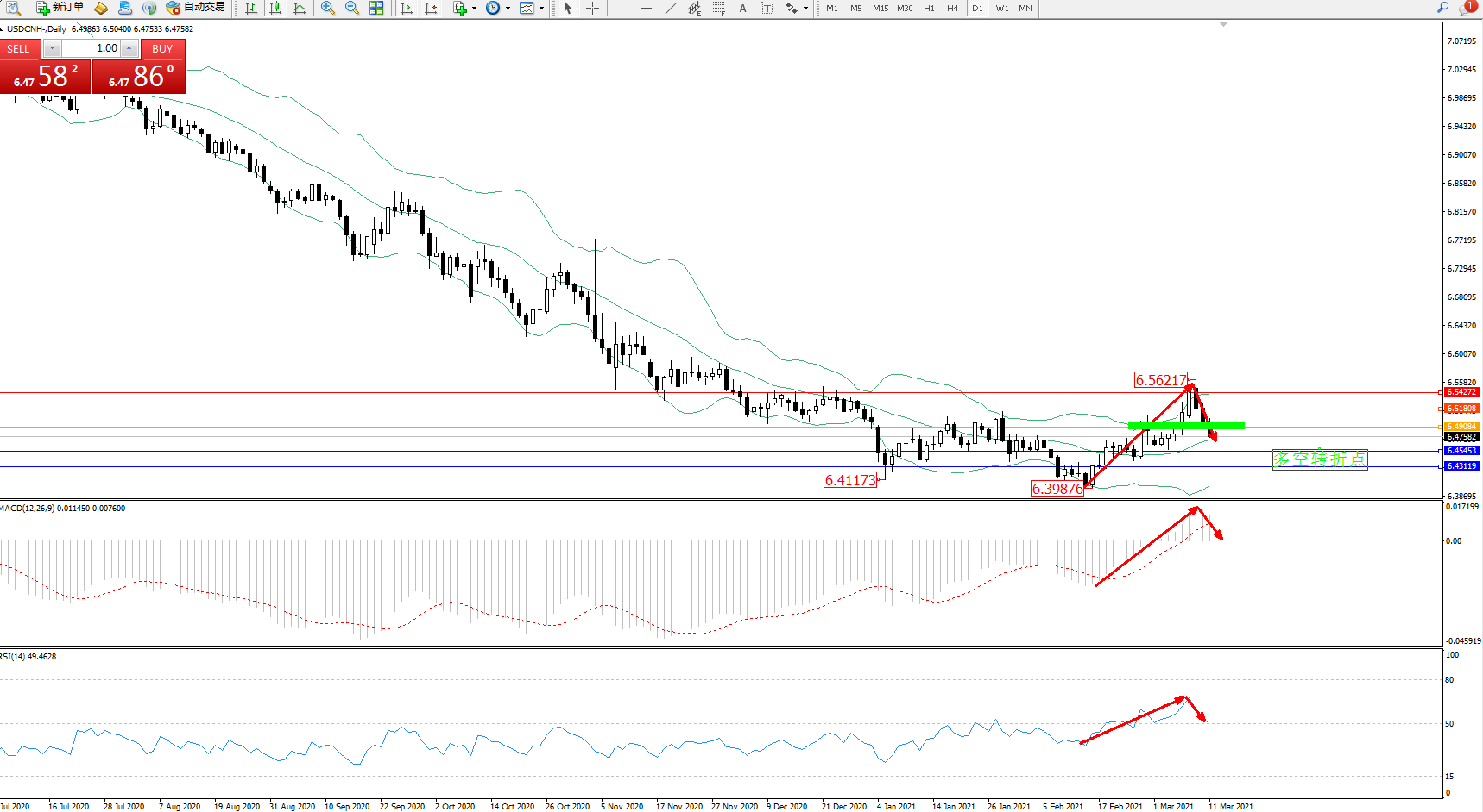 交易策略:6.49084下方看跌,目标6.45453、6.43119