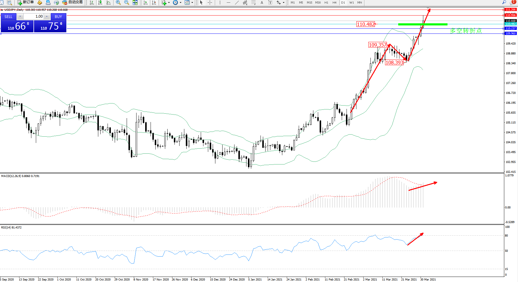 交易策略:110.482上方看涨,目标110.956、111.266