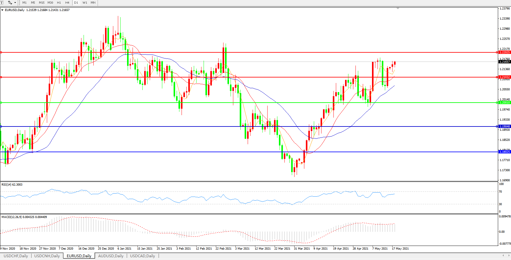 欧元兑美元EURUSD   日线图: