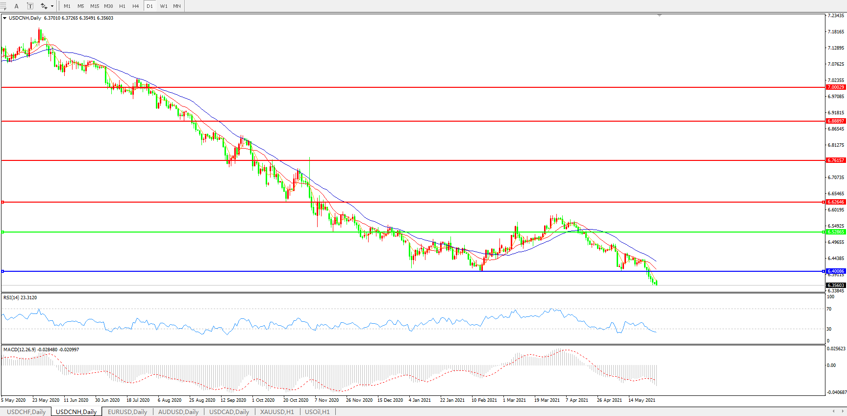美元兑人民币USDCNH    日线图: