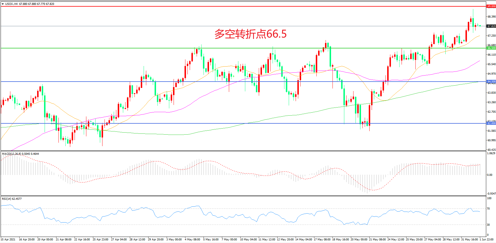 交易策略:在66.50之上看涨,目标69.00    72.00