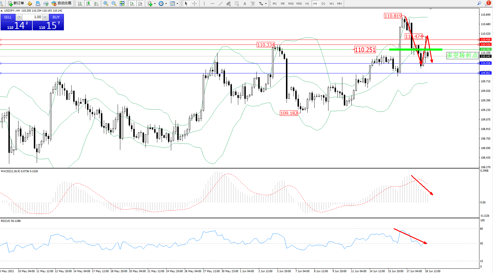 交易策略:110.251下方看跌,目标110.018、109.852