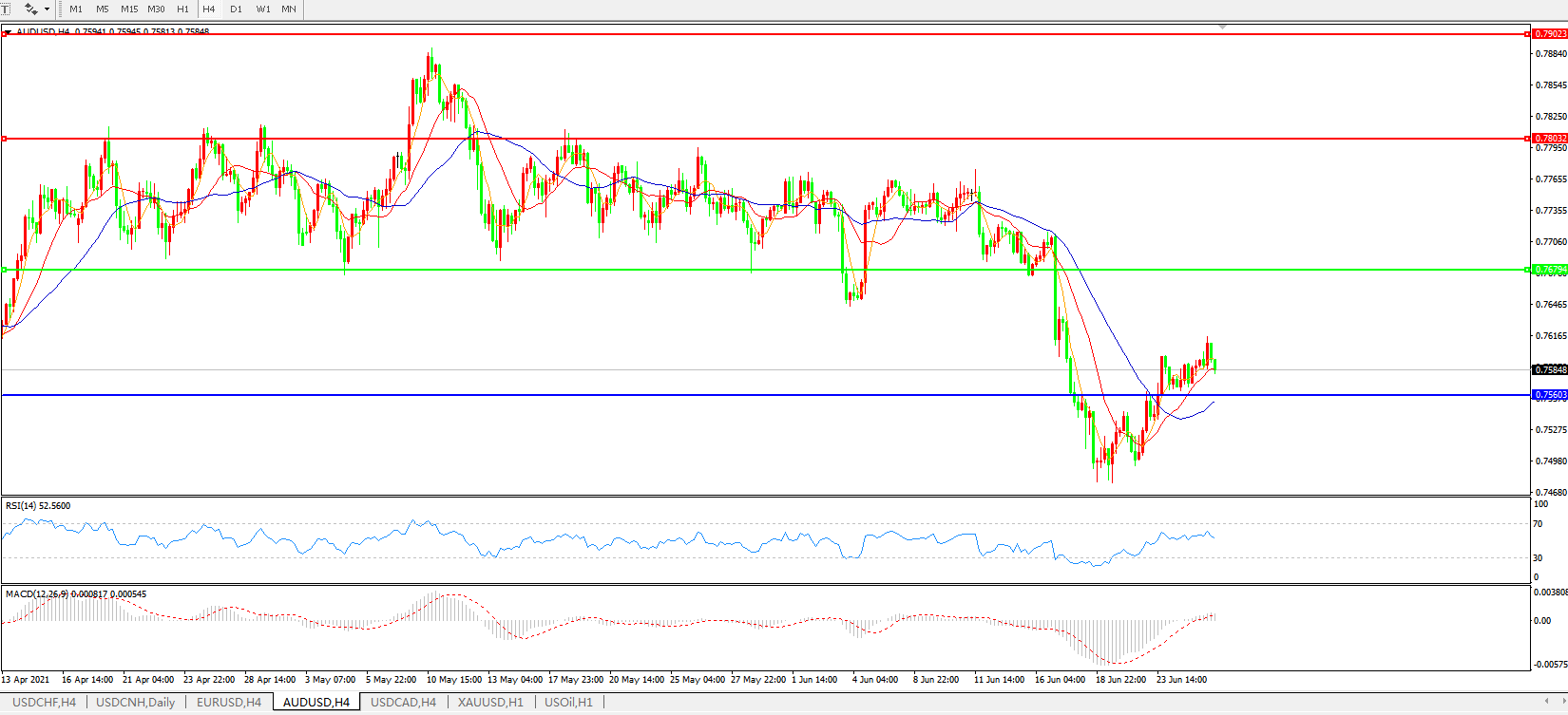 AUDUSD 4小时图: