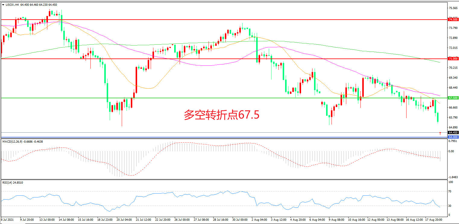 交易策略:在67.50之下看跌,目标64.00       60.00