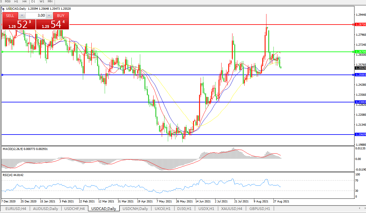 随着油价大涨,美元兑加元跌0.53%至1.2553,创8月16日以来新低;8月31日低点1.2569是近期支撑位