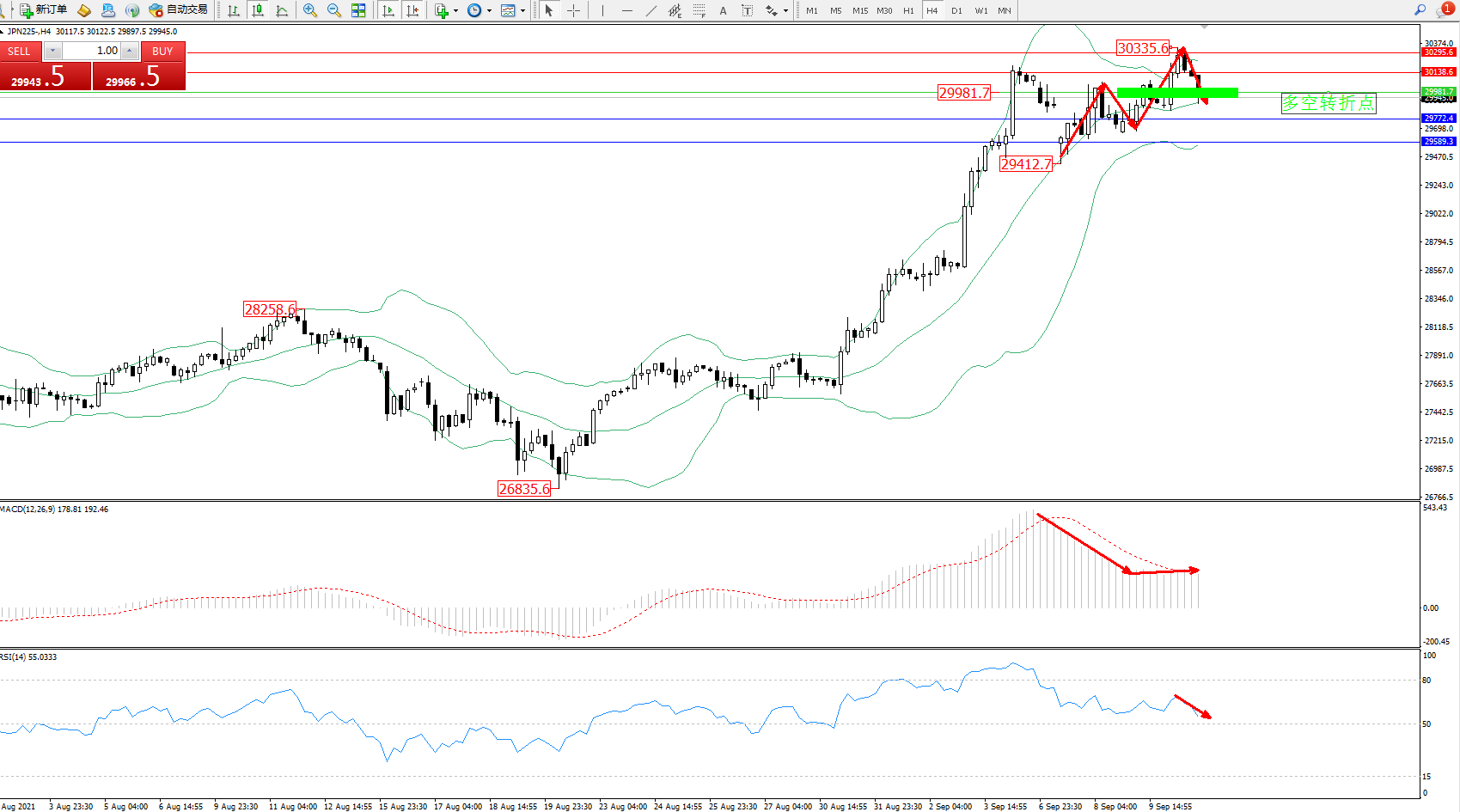 日经225指数9月10日(周五)收盘上涨348.31点,涨幅1.16%,报30356.50点。据日经新闻:日本行政改革担当大臣河野太郎的竞选纲领是追求具有实际意义的能源政策。河野太郎宣布参加执政党党魁竞选,寻求“有现实意义的能源政策”以帮助工业。誓言将加强日本对单方面改变现状的努力。