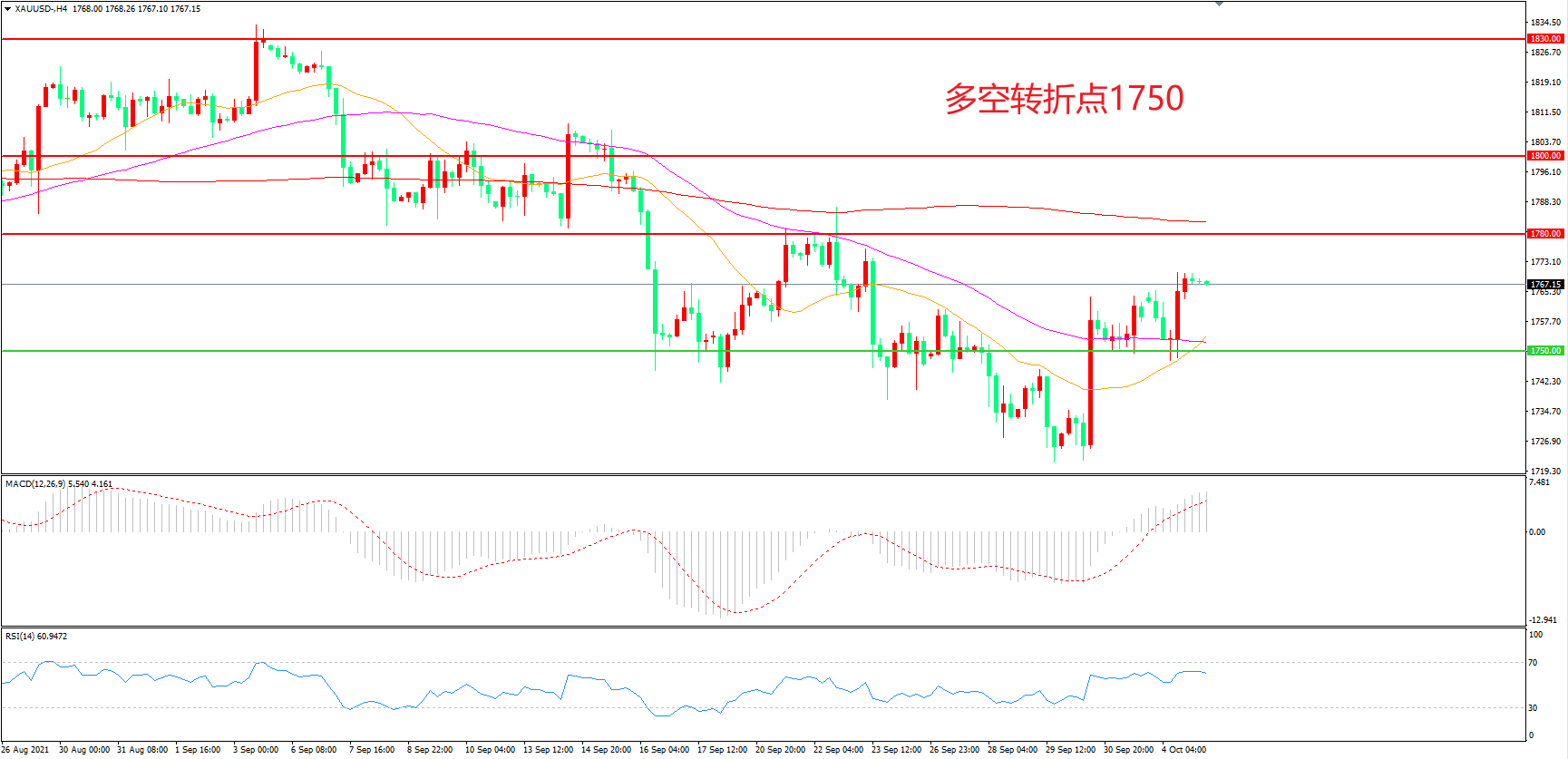 交易策略:在1750.00之上看涨,目标1780.00            1800.00