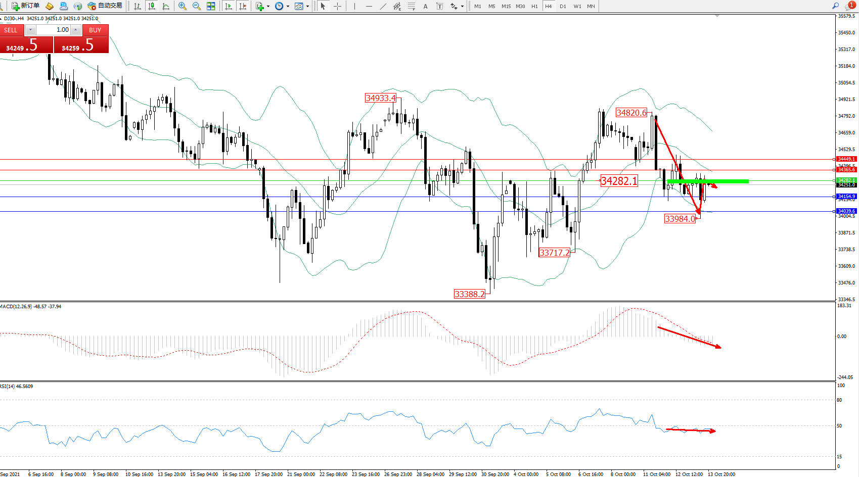 交易策略:34282下方看跌,目标34154、34039