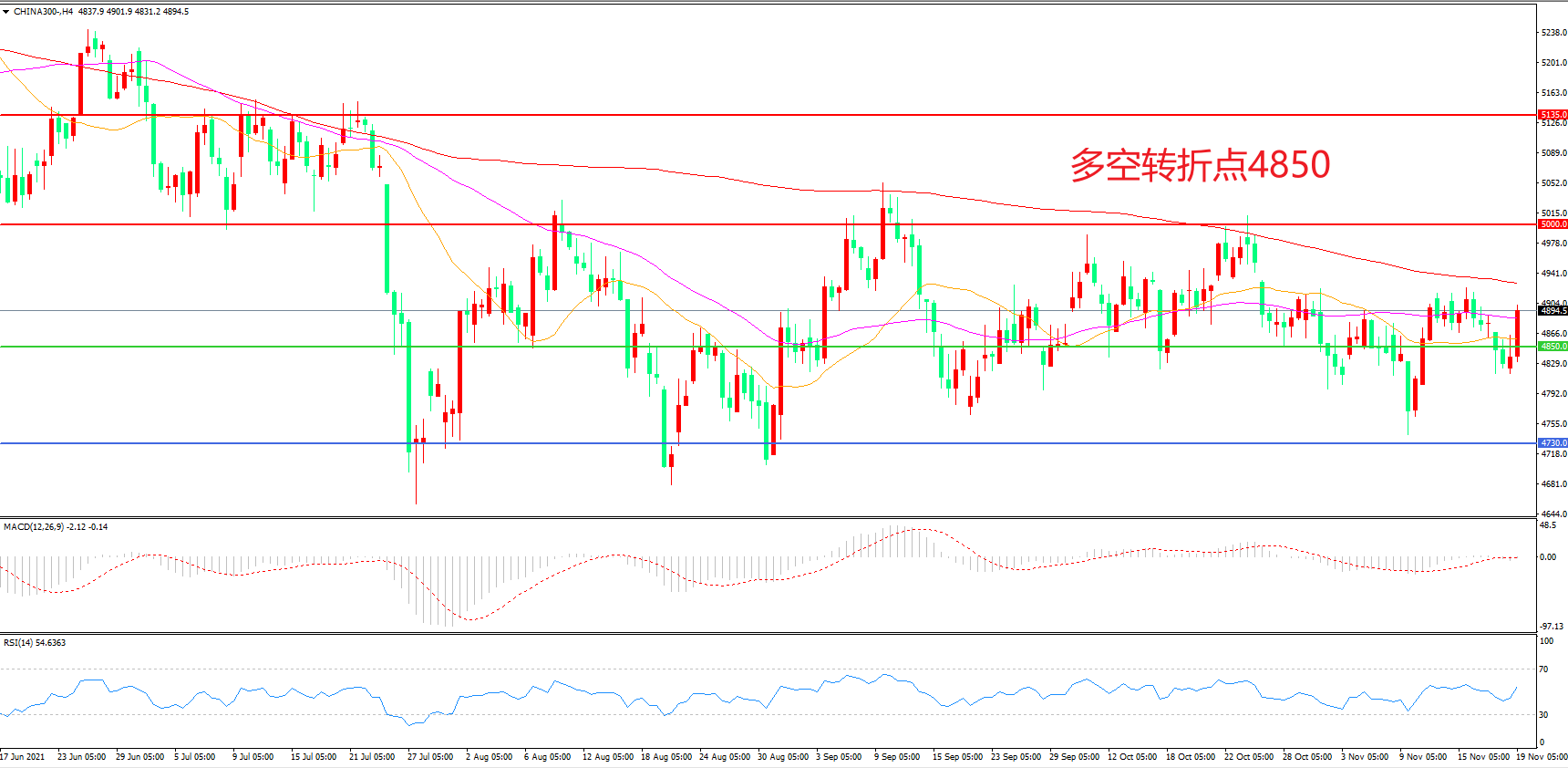 多空转折点:4850.00