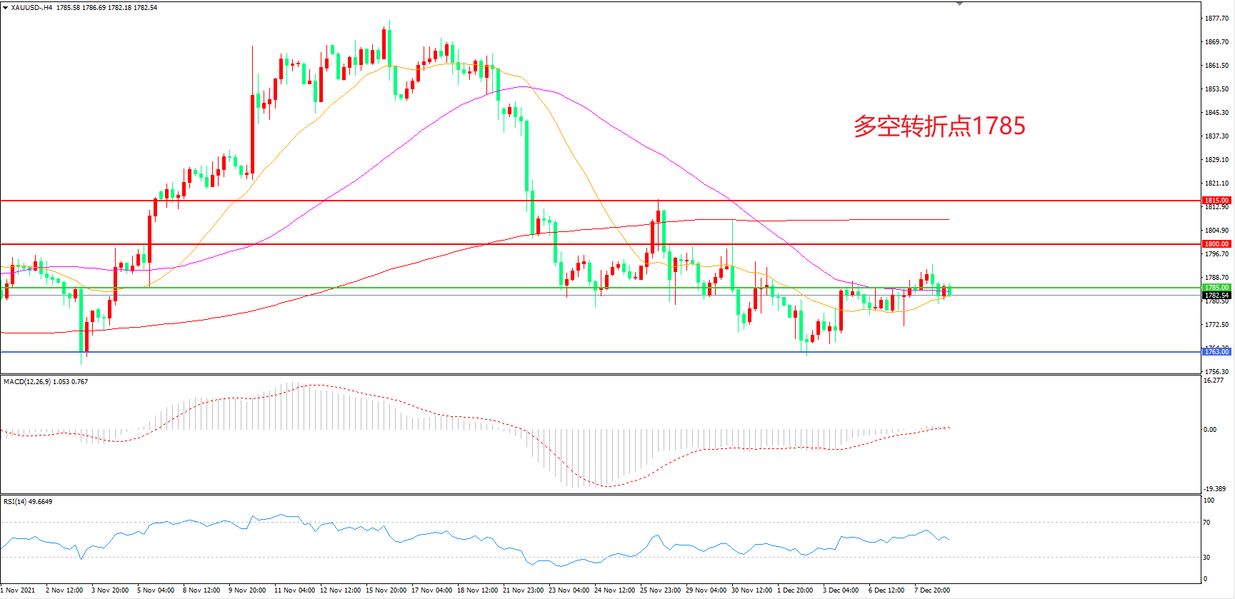 多空转折点:1785.00