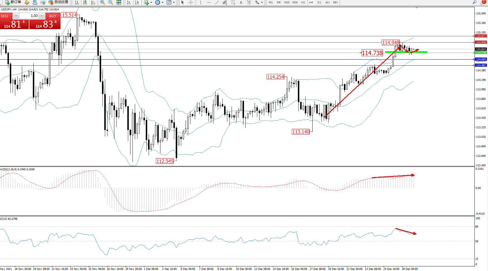 交易策略:114.738上方看涨,目标114.948、115.077