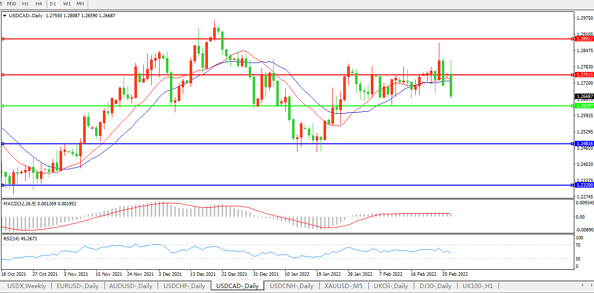 美元兑加元USDCAD    日线图: