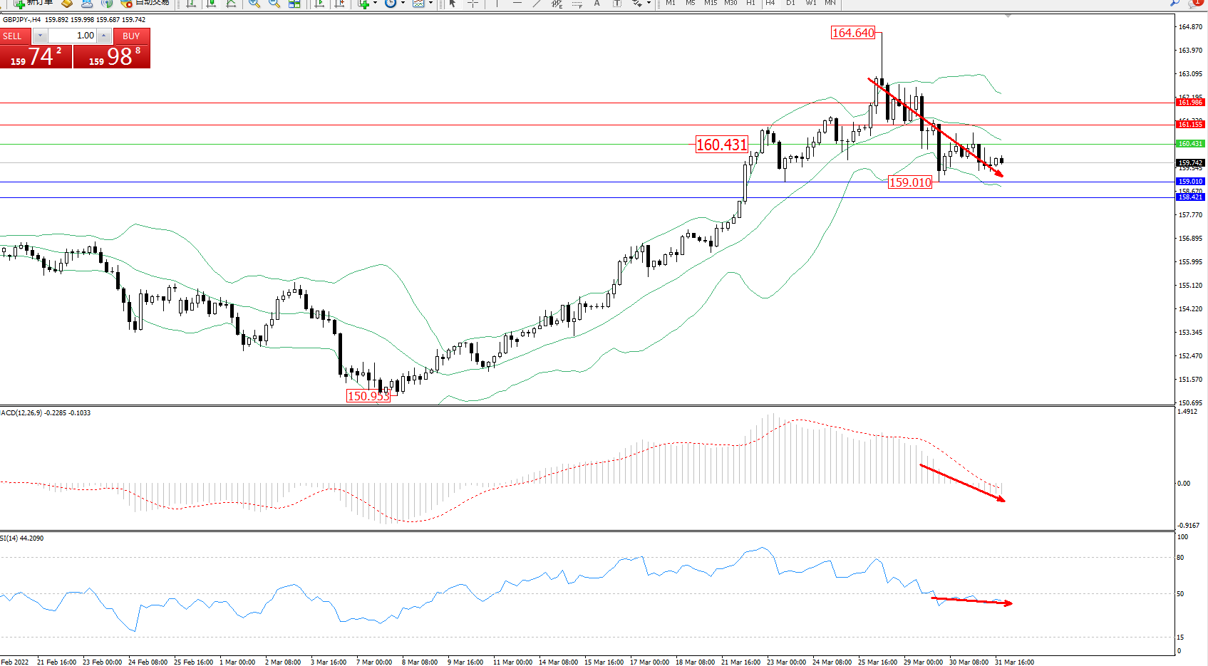 交易策略:160.431下方看跌,目标159.010、158.421