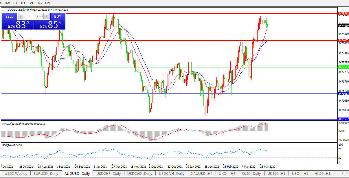 压制位:0.7400    0.7550