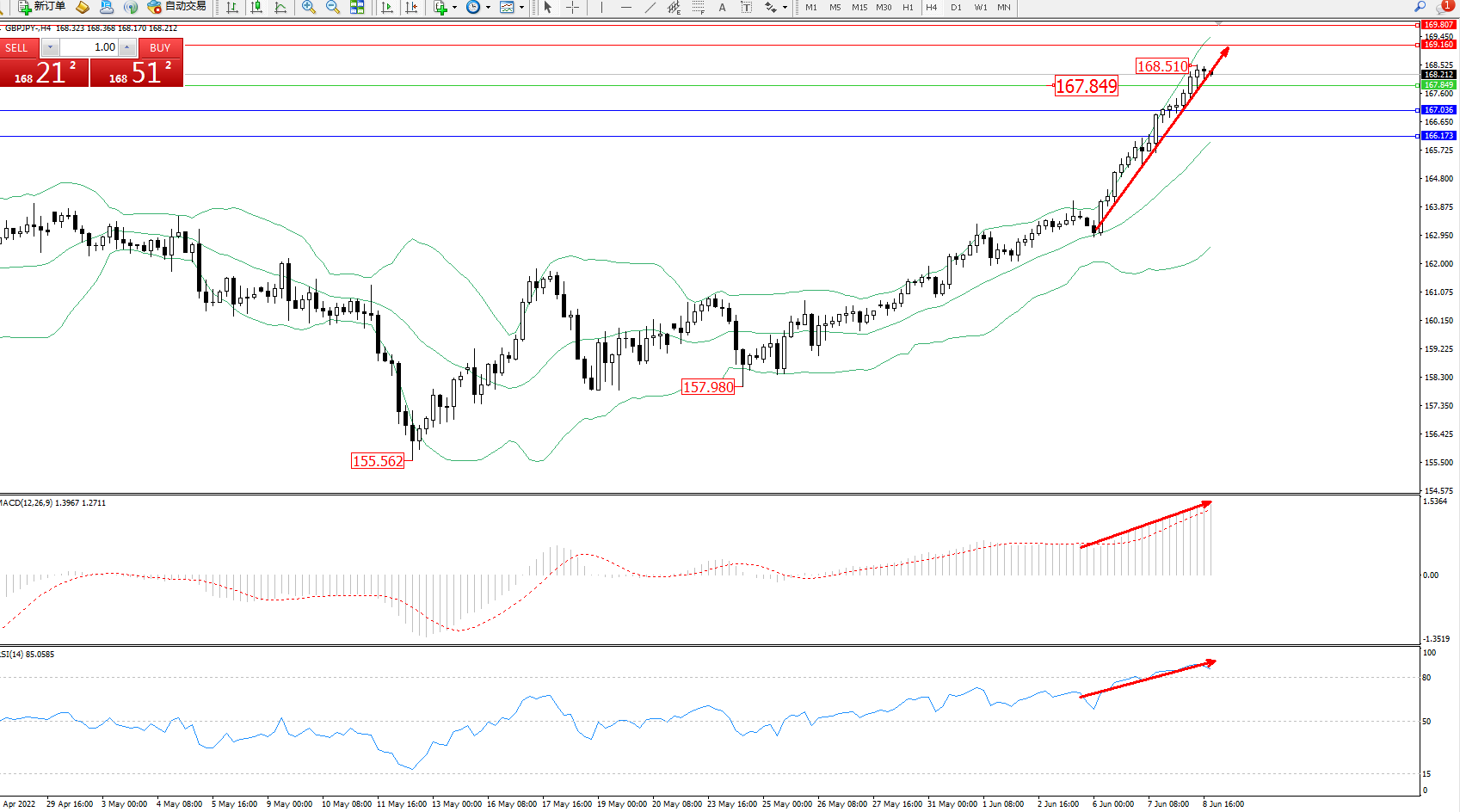 交易策略:167.849上方看涨,目标169.160、169.807