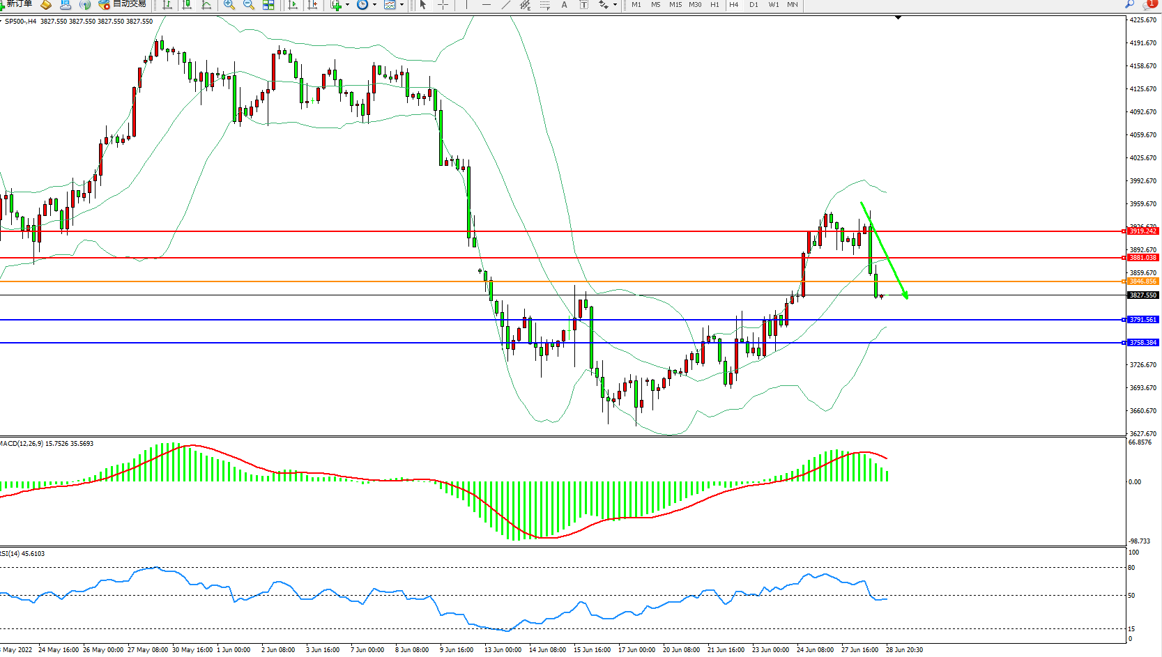交易策略:3846下方看跌,目标3791、3758