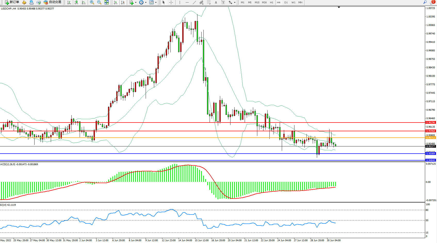 美元瑞郎USDCHF——4小时K线图显示: